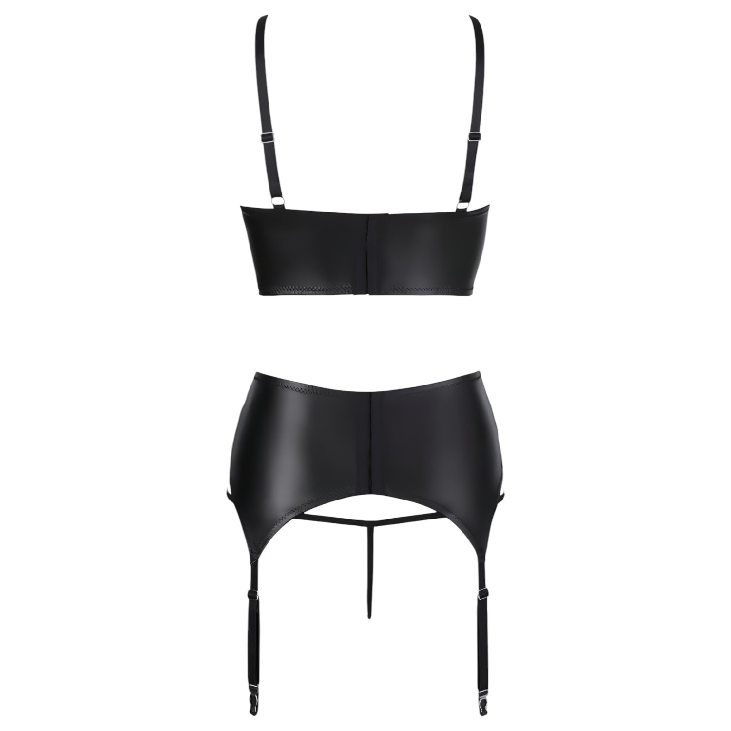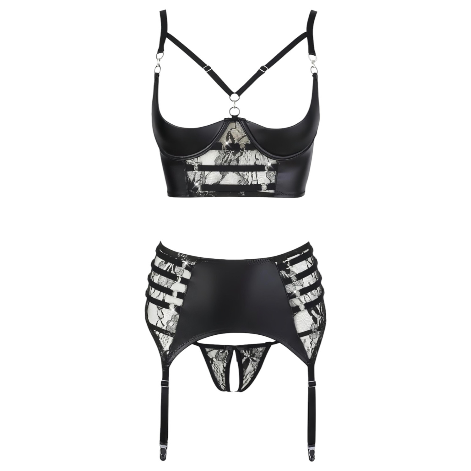 Abierta Fina - conjunto lencería encaje con tirantes brillantes - negro - 80B/M