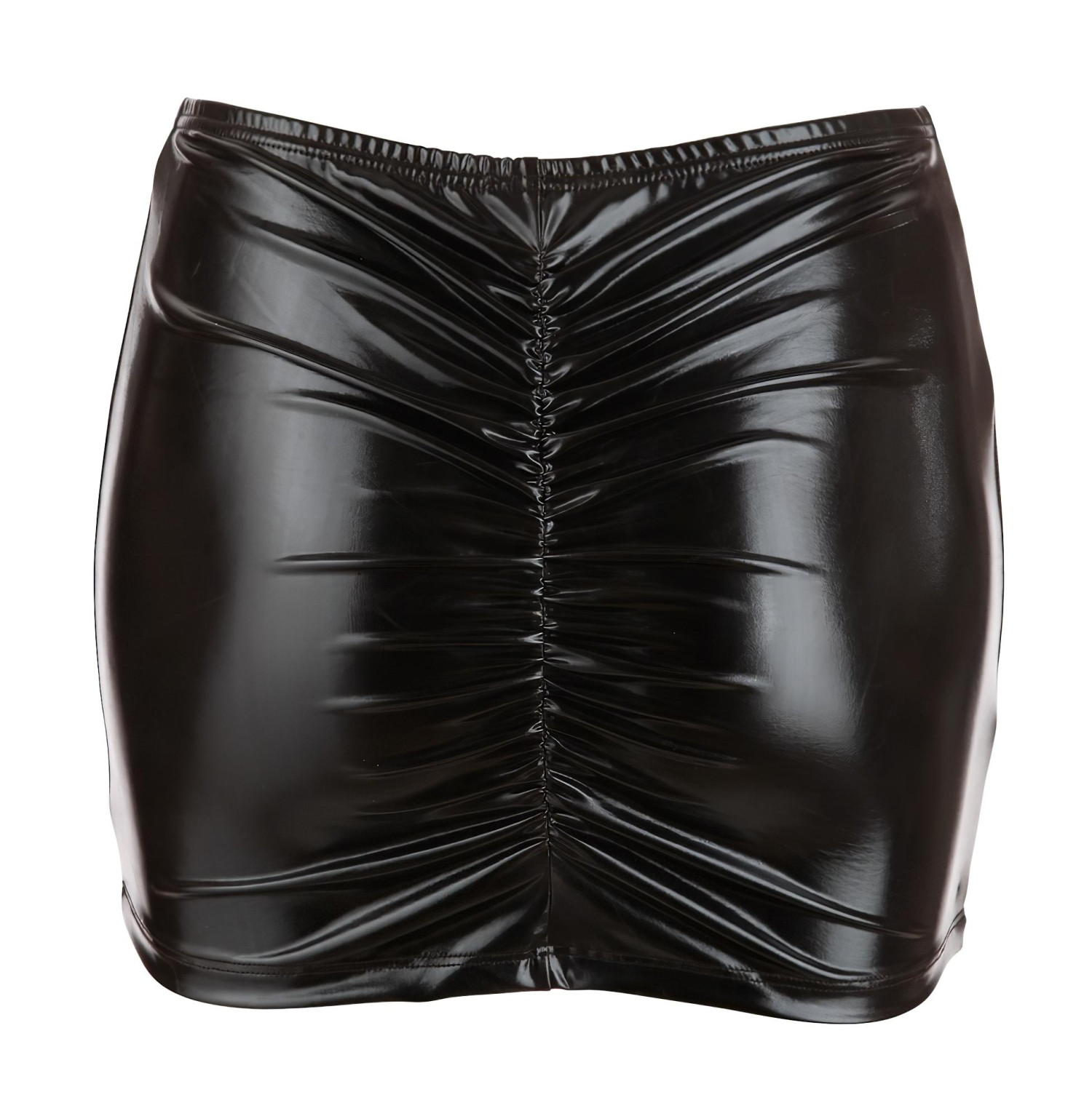 ¡Esta minifalda provocativa, gracias a su material negro y brillante, resalta y define perfectamente tus curvas!