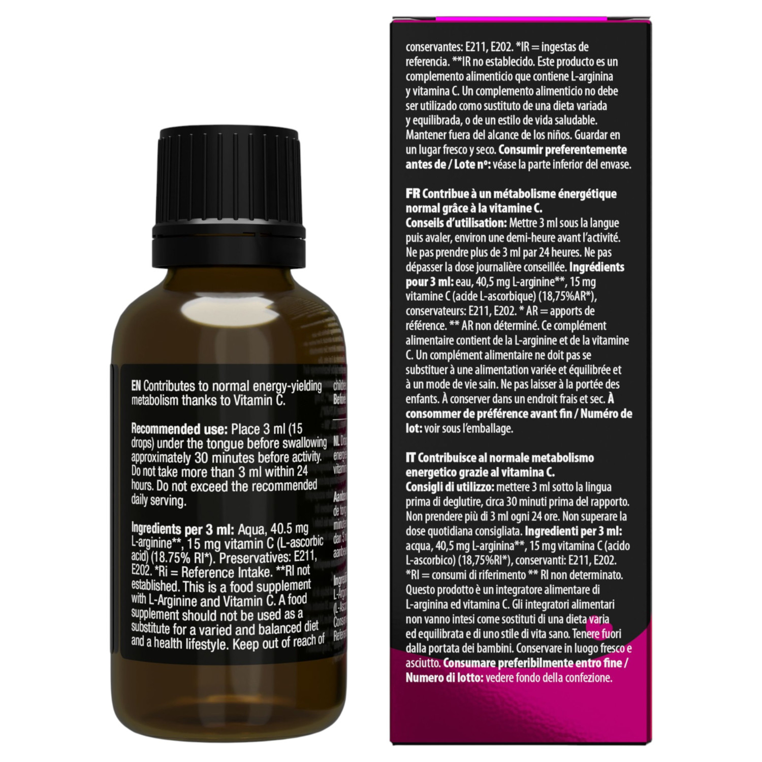 Este producto es un suplemento dietético con L-arginina y vitamina C.