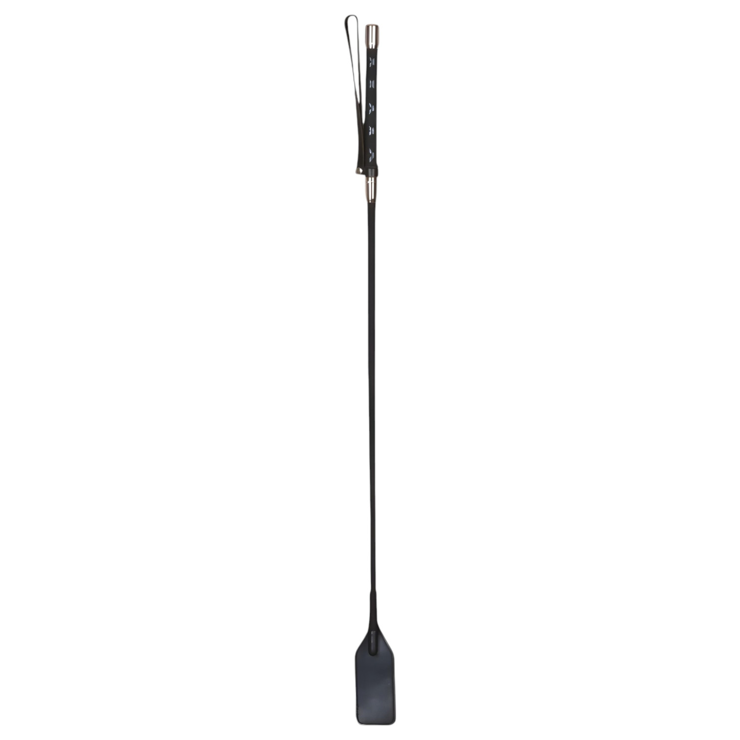 Toma el control con este accesorio especial, hecho con materiales de alta calidad, una fusta de cuero que no pasa desapercibida. Decorada con detalles metálicos brillantes en el mango, tiene un asta de plástico con efecto trenzado y una correa de sujeción segura.
